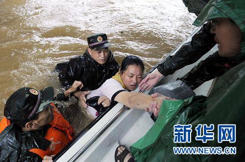 7月13日,武警官兵在安徽省安庆市营救被困群众。当日,安徽省安庆市城区遭遇百年一遇的强降雨,城区大面积严重积水,严重影响群众生活。从13日5时至16时,安庆市城区累计降雨290.5毫米,是有记录以来的百年一遇的降雨量。目前,尚未接到人员伤亡的报告。新华社发(徐国康 摄)