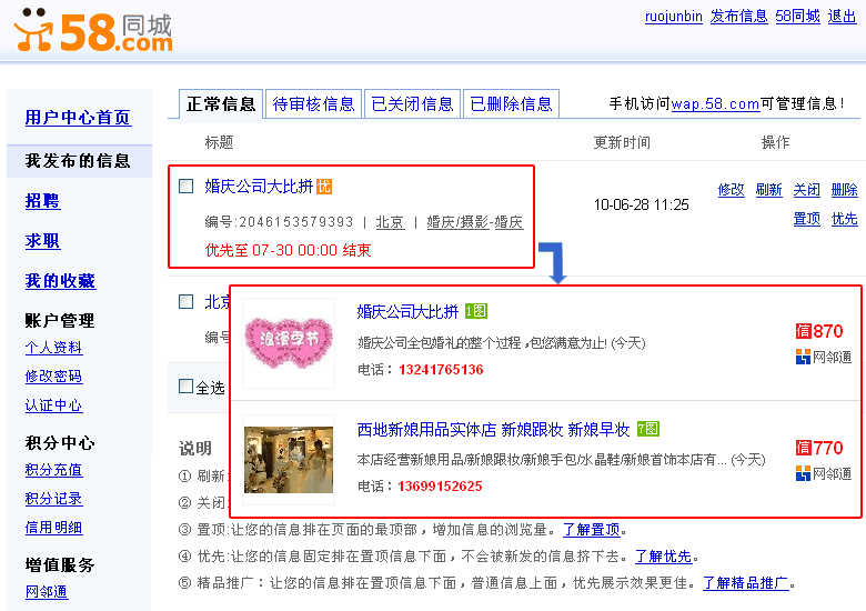 信息优先后,能被更多的浏览者所关注。因为用户在浏览信息的时候,通常会重点关注排名靠前且信用较高的商家。 信息的浏览量大幅度提高,商家的知名度和品牌也相应提高,更值得信赖。